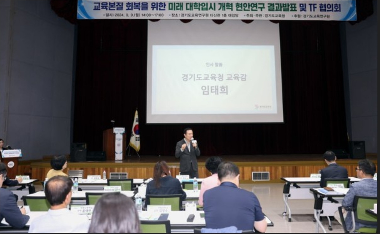 대학입시 개혁은 구체적인 방안을 마련하며 실행하고 있다. 경기교육은 2024년 7월, 교육 본질 회복을 위한 미래 대학입시 개혁 추진을 선언했다. 선언 직후 내·외부 전문가 60여 명으로 구성된 ‘미래 대학입시 개혁 전담 기구(TF)’를 조직해 지속적인 개선 방안을 논의했고, 현안 연구 보고회를 마쳤다. 같은 해 9월 대입제도 개혁 방안 정책 연구에 착수하여 12월 최종 보고회를 마치고 2025년부터는 본격적인 소통과 협의를 이어갔다.