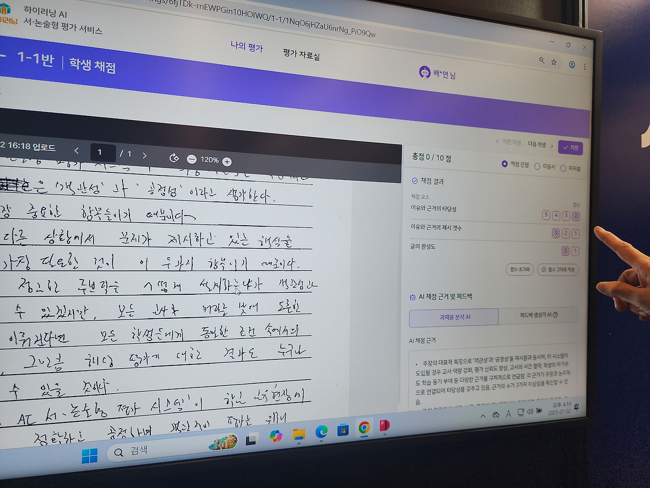 행사에 참여한 기자가 직접 시스템을 검증한 결과도 인상적이었다. 고의로 근거 없이 모호한 답안을 제출했음에도 AI 시스템은 정확한 피드백을 제공했다.