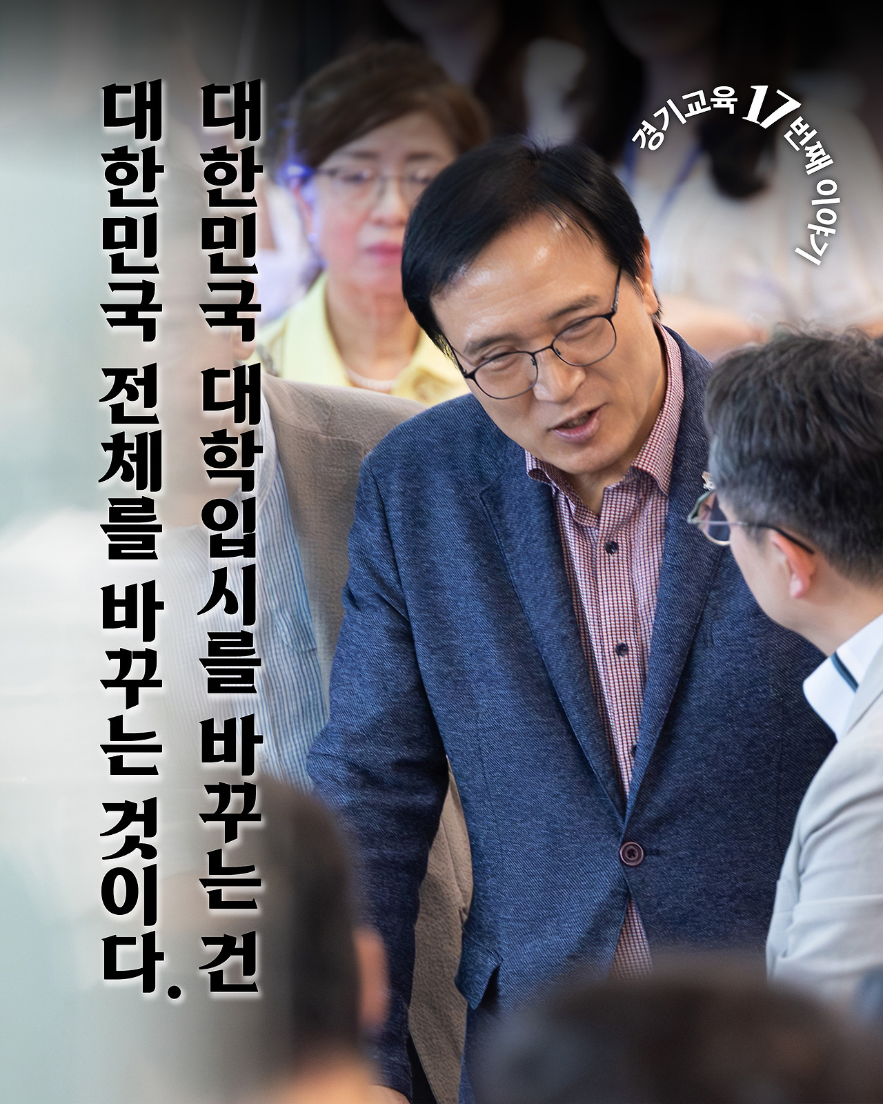 “이 자리에 계신 모든 교육감님께서는 각자의 교육 철학을 가지고 대한민국 미래 교육을 위한 정책과 개혁 방안들을 추진하고 계십니다. 하지만 그 모든 노력이 대학 입시 앞에서는 다 물거품이 되고 있습니다. 현장의 역량은 충분합니다. 이제 대입 개혁의 핵심인 공정한 평가 체제를 구축하고 제도화하는 노력이 필요합니다. 경기교육이 앞장서겠습니다.”