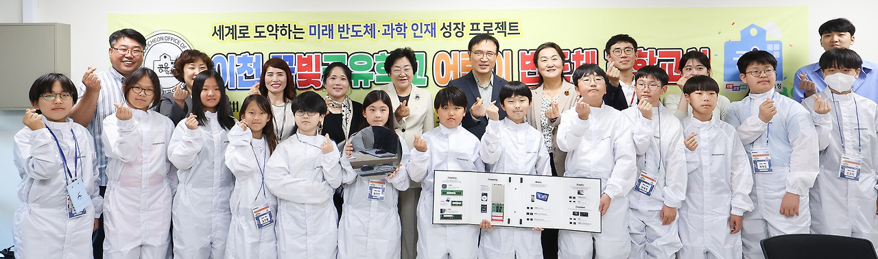 이천 꿈빚공유학교의 ‘어린이 반도체 과학 교실’이 그 시작이다. SK하이닉스 내부는 보안상 외부인 출입이 제한되지만, 해당 프로그램 진행일에는 학생들에게 특별히 개방하여 시설 견학 및 체험 기회를 제공했다. 이러한 개방은 공유학교와의 협력 덕분에 가능했던 일이다. SK하이닉스는 연구원의 안내로 엔지니어 체험, 반도체 기초 지식, 기업 소개를를 진행해 주었다. 초등학생들은 한국세라믹기술원 이천분원에서 반도체 제조 공정을 직접 관찰하는 기회를 가졌다. 방진복을 입고, 얇은 웨이퍼를 만져 보고, 궁금한 것을 질문하는 아이들의 표정에 호기심이 가득했다.