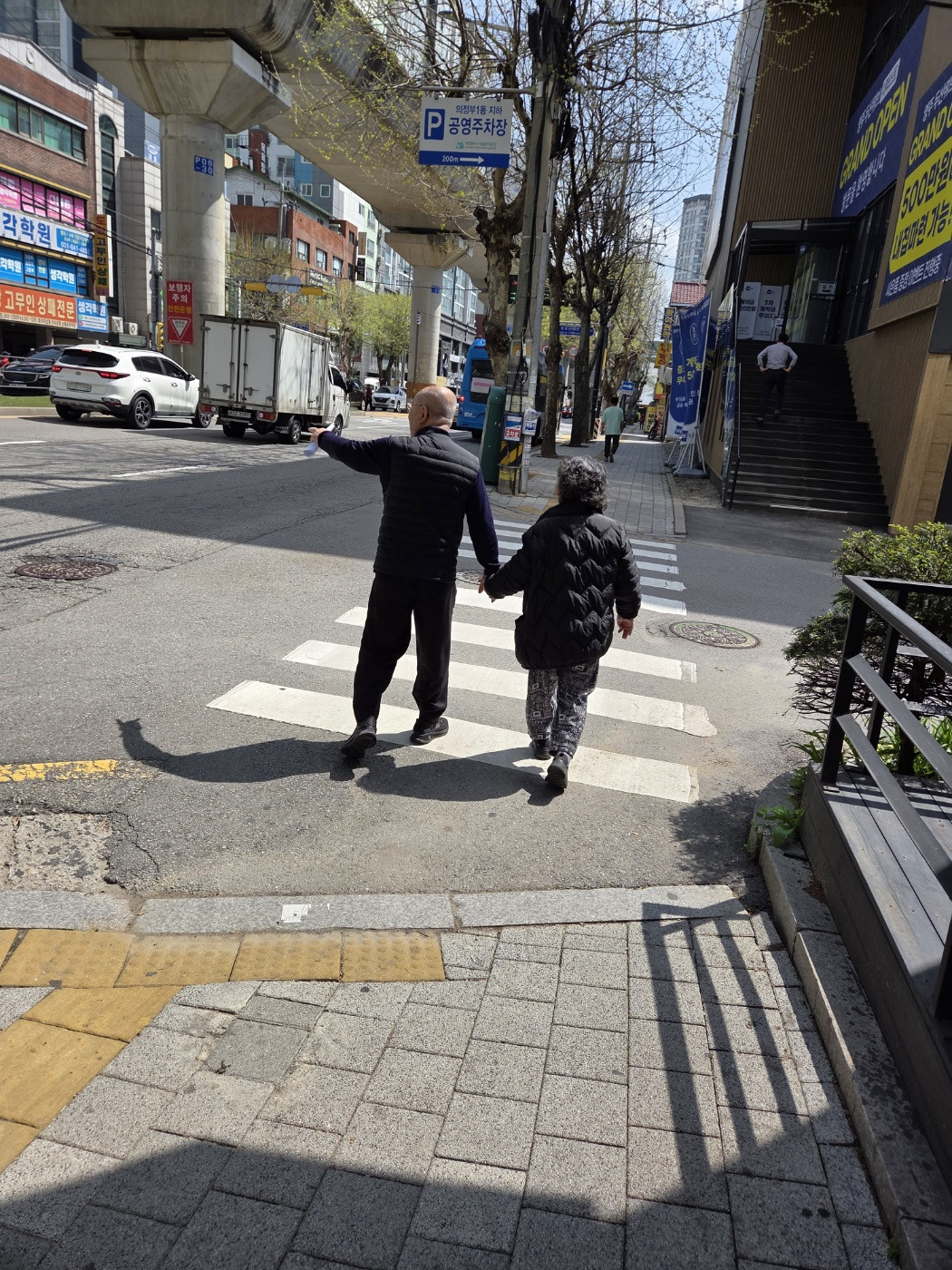 노 부부의 맞잡은 손
