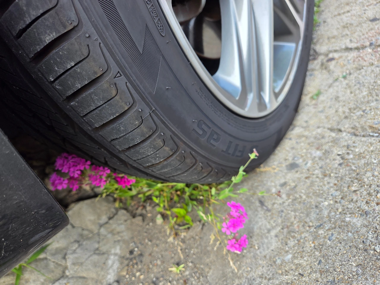 배려 없는 무심한 차주, 콘크리트 바닥 틈에 생명