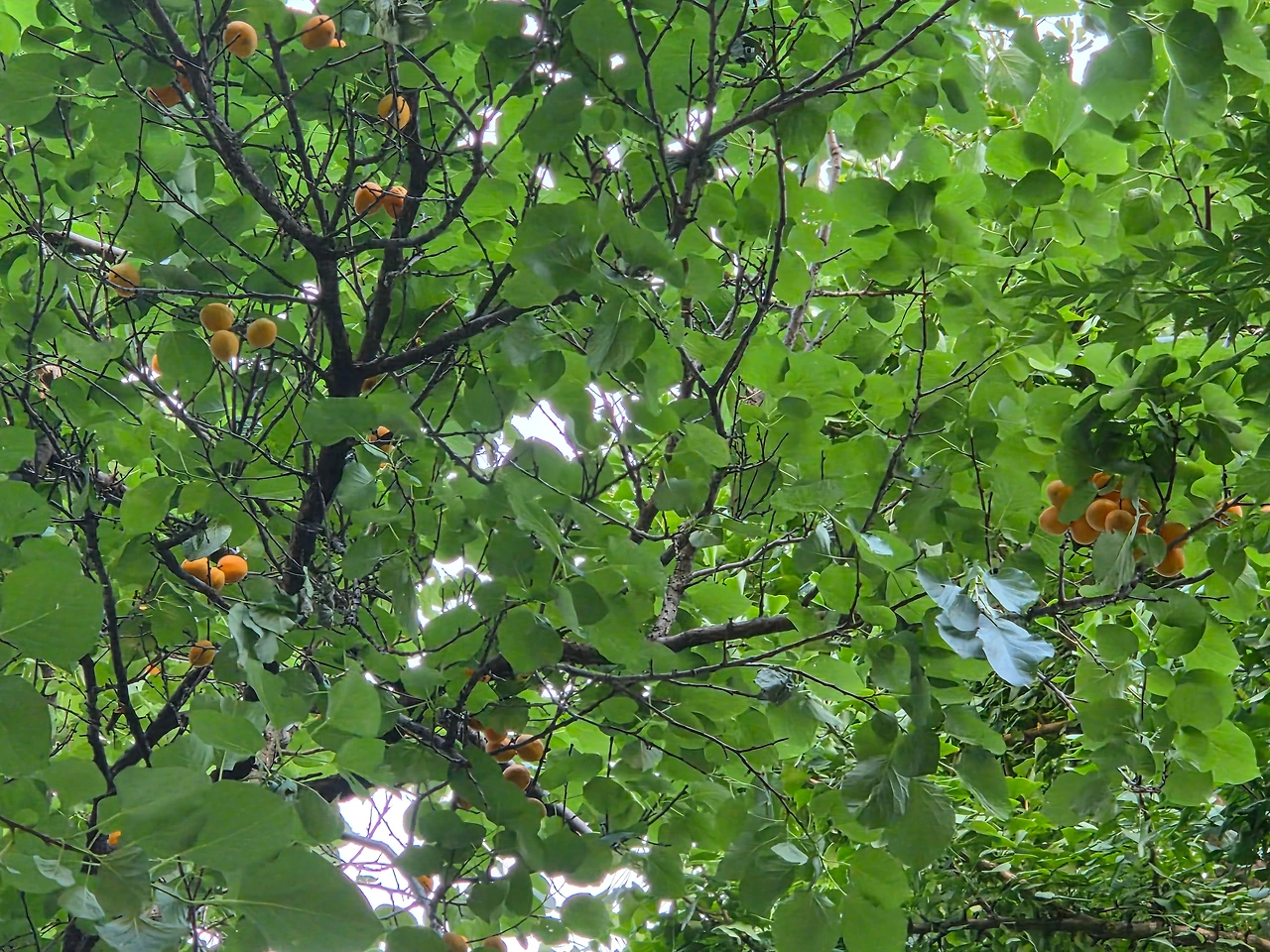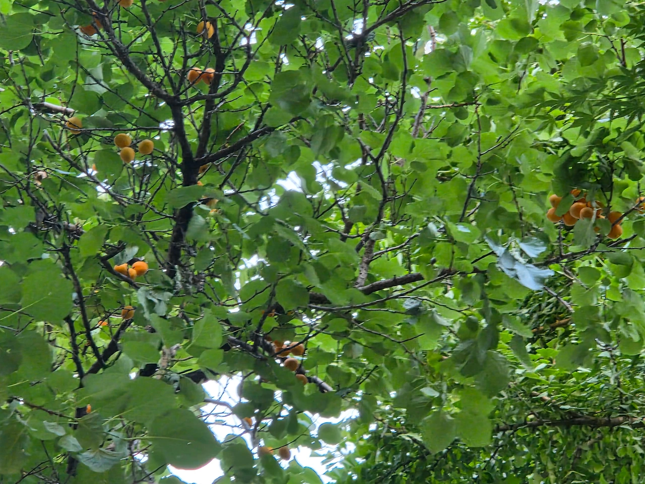 갑작스러운 소낙비가 내리면 후드득 떨어지는 살구에 아이들은 우르르 달려들어
