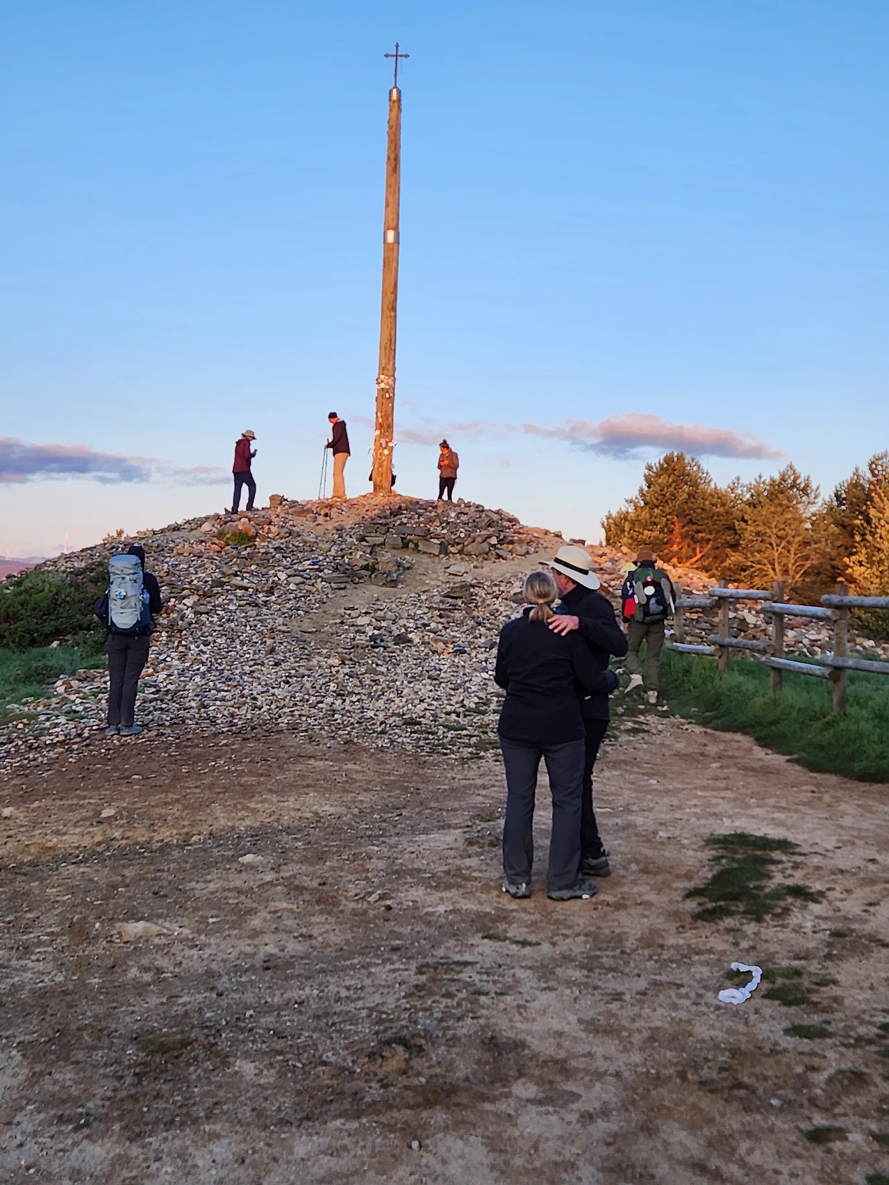 까미노에서 가장 높은 곳 해발 1600 되는 곳에 높이 5미터 정도의 '철의 십자가'가 있다. 전날 묵은 숙소는 해발 1400 이어서 아침에 조금만 걸으니 철의 십자가가 나왔다. 이곳에는 자기가 살던 곳의 돌을 가져와서 두고 가는 풍습이 있다. 돌이 아니라도 작은 물건을 두고 가기도 한다. 그것들을 내려놓으면서 후회, 미움, 슬픔 같은 마음 속의 돌덩이들을 사람들은 같이 내려놓는다. 포옹을 하며 서로의 눈물을 닦는 사람, 기도를 하며 눈물을 흘리는 사람이 보였다. 나는 돌을 챙겨오지는 못해 다른 사람들을 보고만 있었다. 내 속에서 나를 누르는 무거운 돌덩이..., 없는 것 같다. 나는 인생이 그리 깊이 있는 사람은 아닌가 보다.