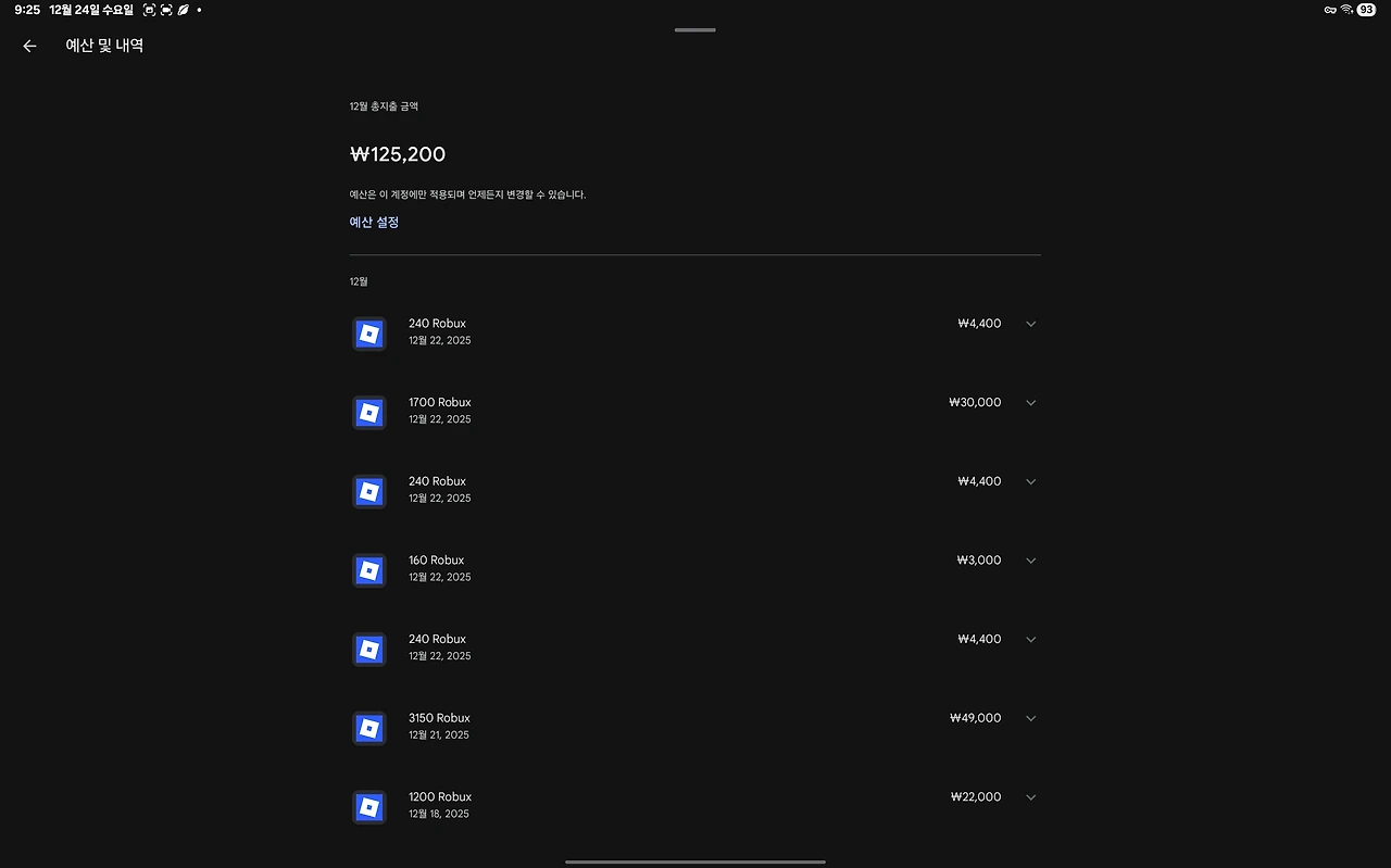 딸계정에 접속해 보니 로벅스를 구매한 내역이 있더군요.