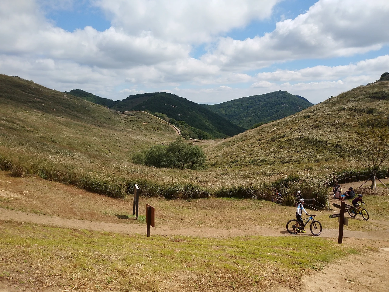 반대편 옥천계곡에서 타고 온 따릉이 팀들이 많이 보인다. 그 길은 완만한가 보다.