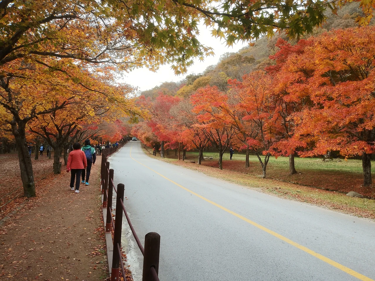 끝이 보이지 않는 아름다운 단풍길을 따라 우리는 걸었다. 우화정 호수와 케이블카를 지나 내장사까지 걸어갔다. 인파의 물결이지만, 미소와 감탄과 환호성으로 모두가 즐겁다.
