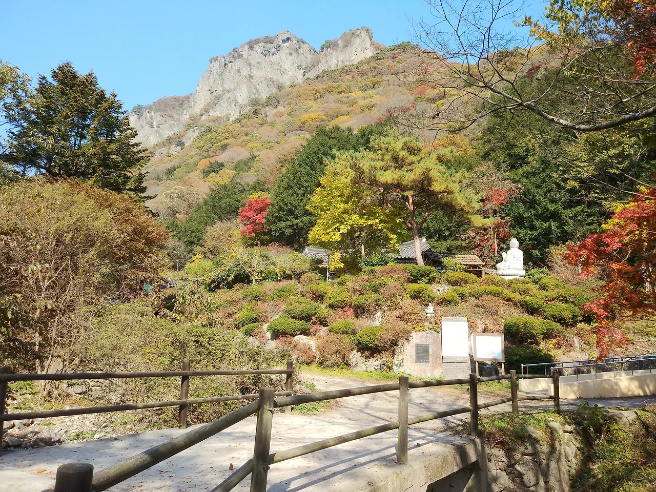 가는 길목은 안개가 짙어 주변을 볼 수가 없었으나, 산 초입에 오니 단풍나무가 울긋불긋 멋진 수채화로 우리를 맞이한다.
