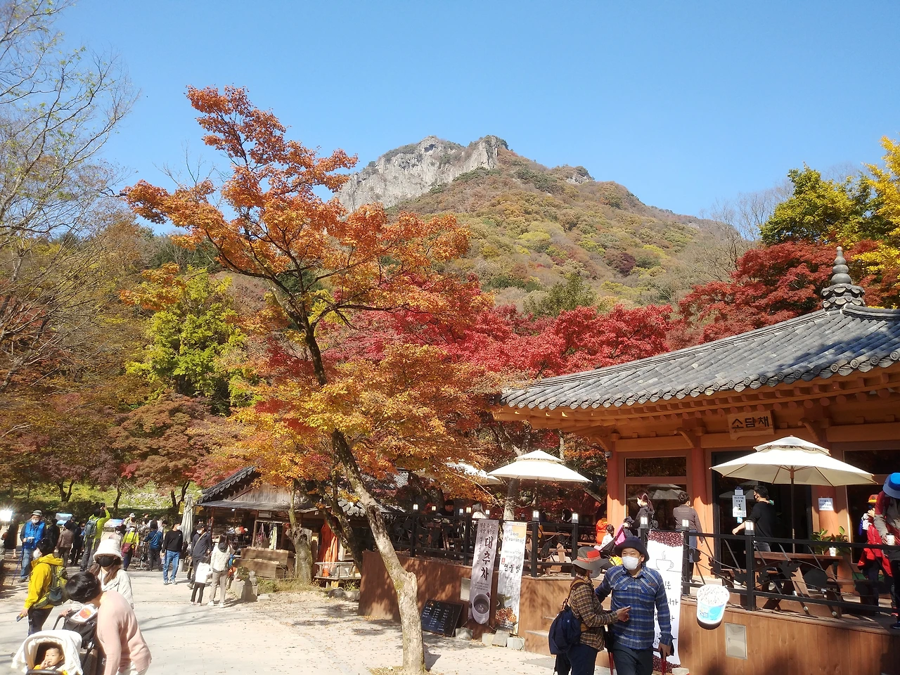 절 입구에 스님이 멋진 목소리로 가을 노래를 부른다. 노래와 단풍이 어우러져 그동안의 갑갑함을 힐링해 준다. 좋은 마음으로 기와 불사도 했다.