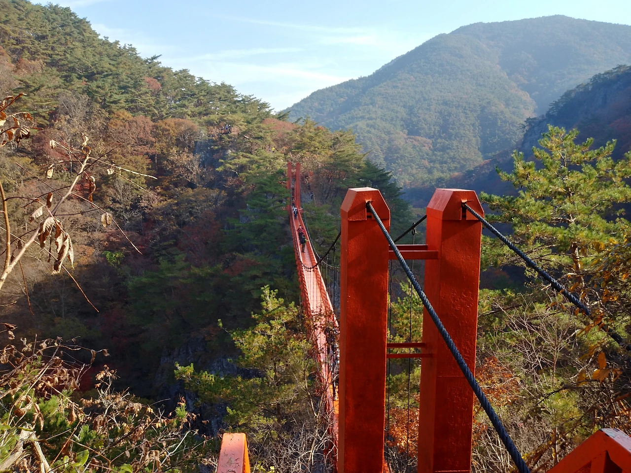 아들은 어린이 사생대회를 열면 더없이 좋은 장소라고 말한다. 아내도 자연이 준 황홀감에 빠져 연신 감탄사를 토한다. 예전에 못 본 현수교와 구장군 폭포까지 올라가 우리는 벤치에 앉았다.