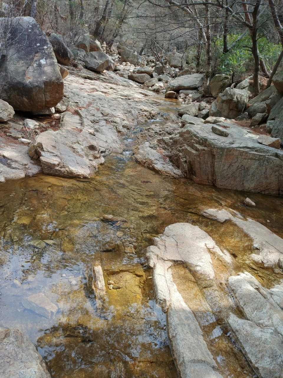 촬촬 철철 커지며 작은 폭포를 이룬다. 겨우내 얼었던 땅이 봄비에 녹아져 나오나 보다.