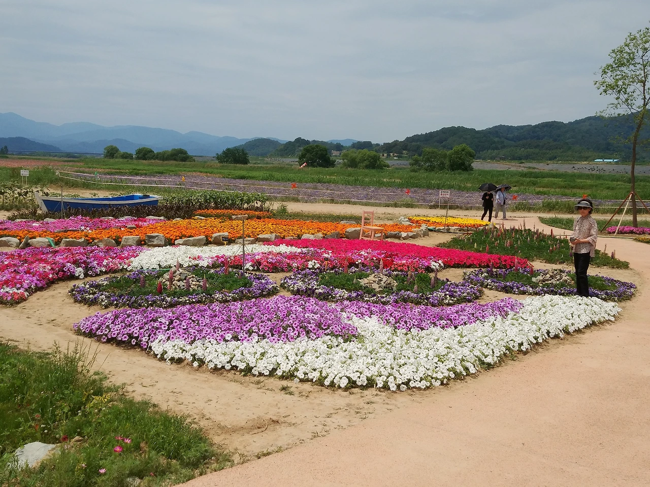 우리는 곧장 내려가 꽃밭 사잇길을 걸으며 감탄사를 연방 질러대면서 사진을 찍었다.