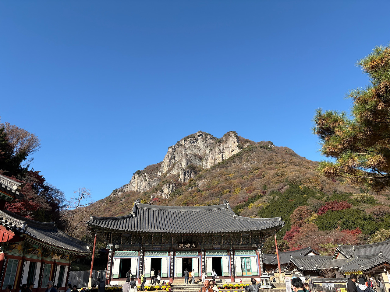 그렇게 단풍구경 온 사람들 틈을 헤치고, 사찰 대웅전까지 도착했다.