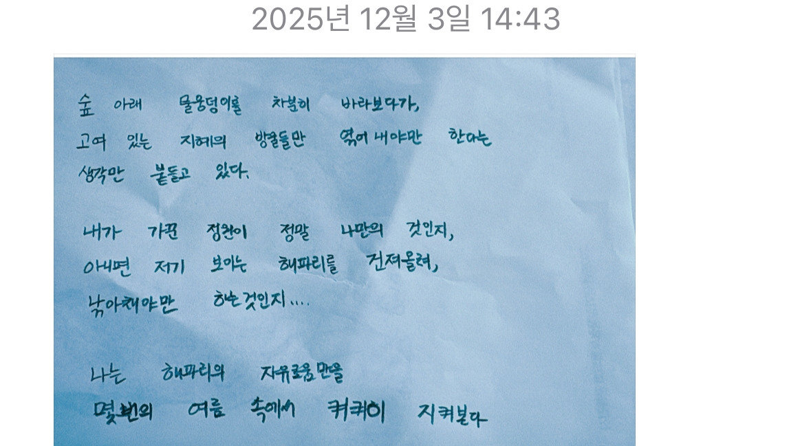 여름의 한가운데에서, 나는 고개를 든 대신 천천히 숙이기로 했다.