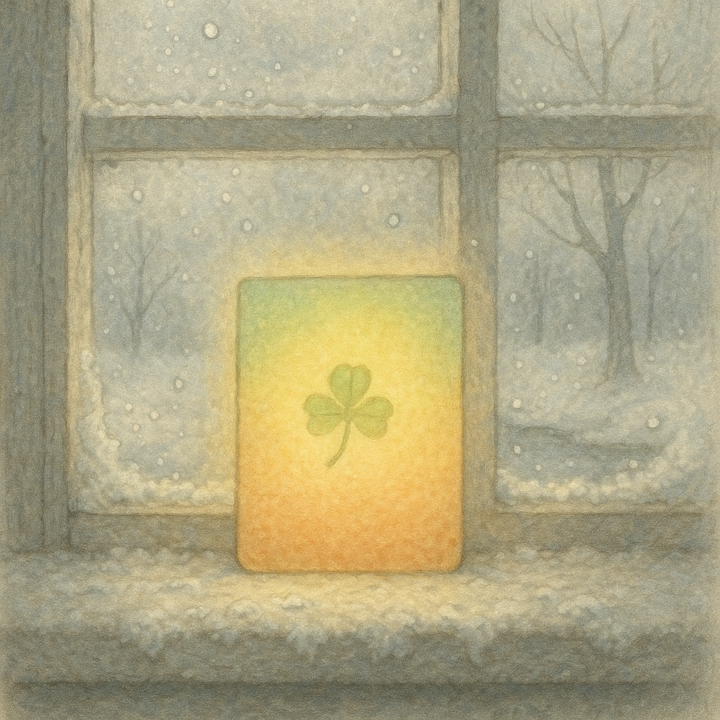 카드 표면에는 희미한 세 잎클로버 그림이
