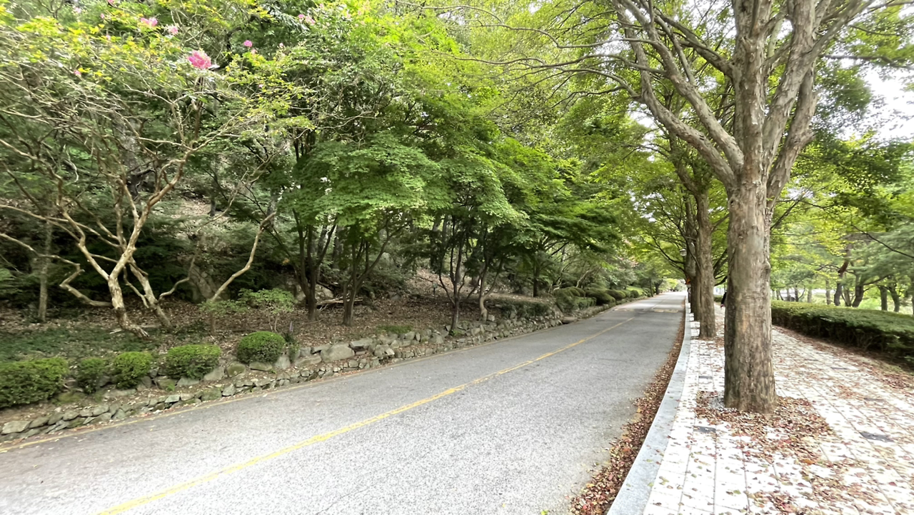 저 멀리 첫 주차장에 차를 세우고 천천히 걸으며 즐긴 금산사 산책길은 기대보다 훨씬 좋아 오길 잘했다는 생각을 들게 만들었습니다.