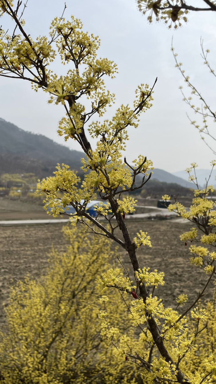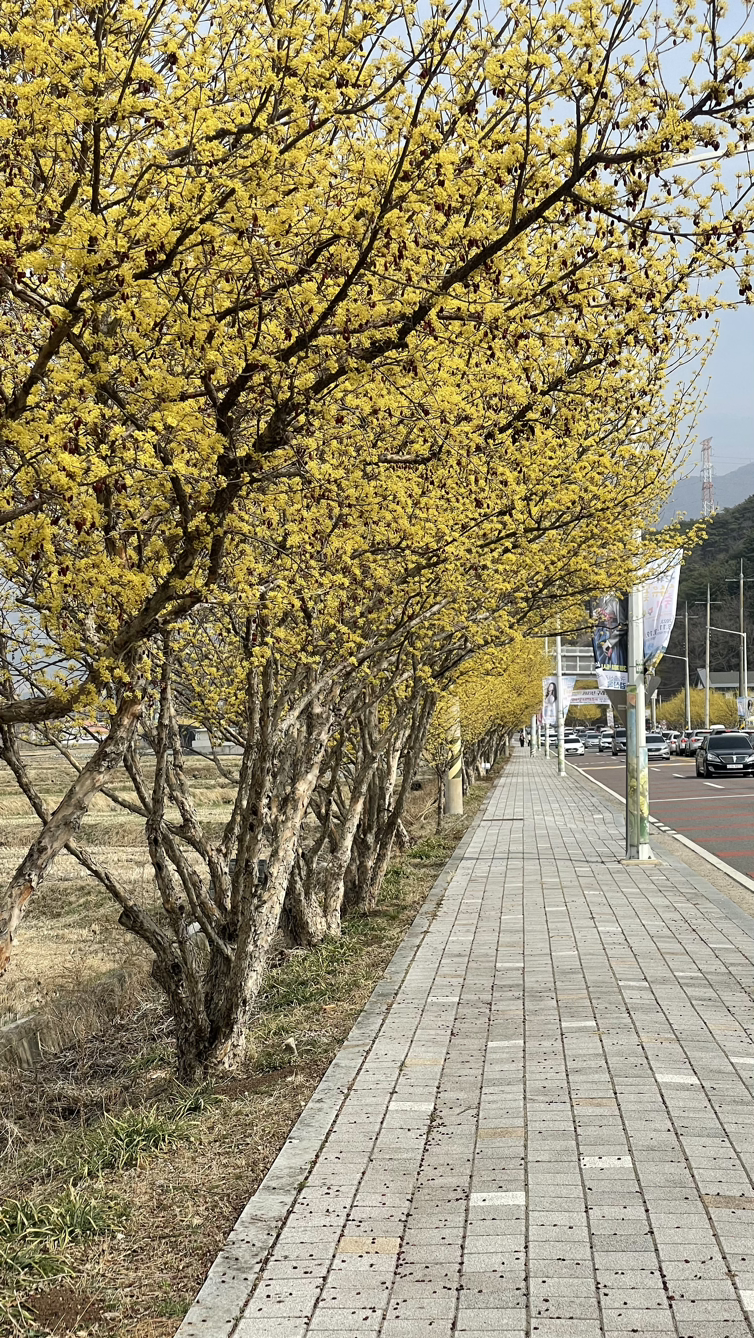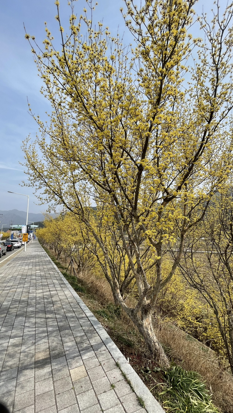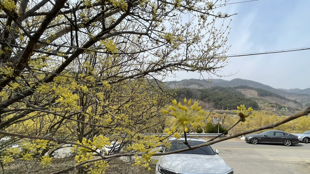 정체된 차에서 느릿느릿 가는데 도로와 주변엔 벌써 노란 산수유나무가 가득 만개해 너무 예쁘게 피어 있더군요.