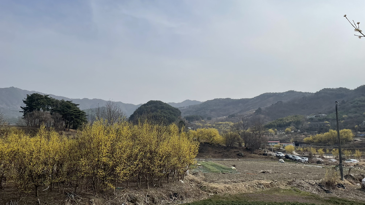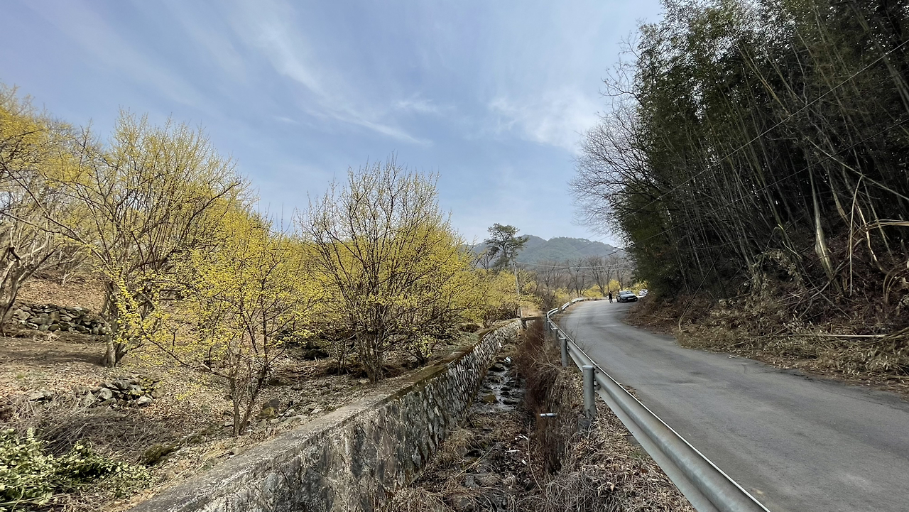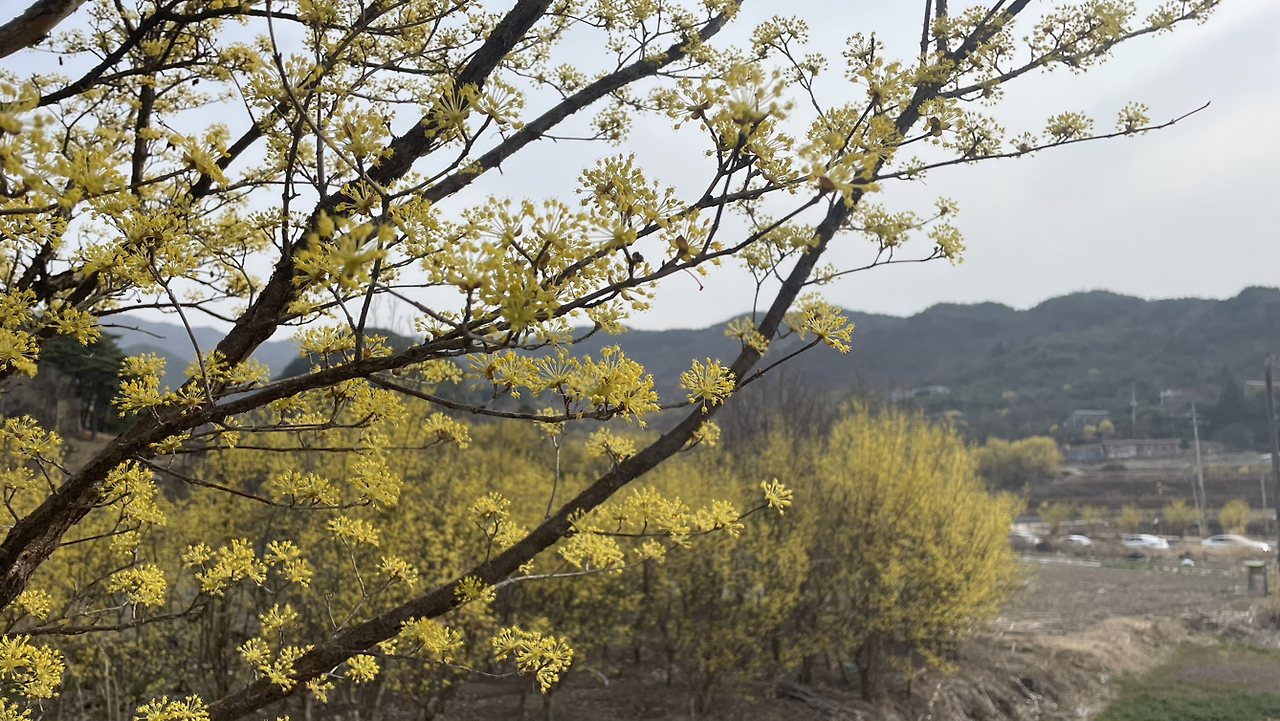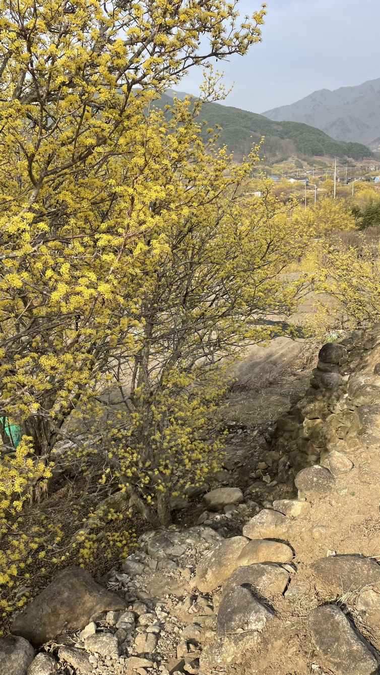 정체된 차에서 느릿느릿 가는데 도로와 주변엔 벌써 노란 산수유나무가 가득 만개해 너무 예쁘게 피어 있더군요.