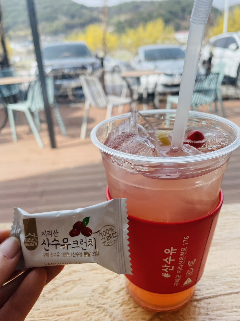 산수유맛이 살짝 나는 커피도 다시 걸으며 맛나게 마셨습니다.