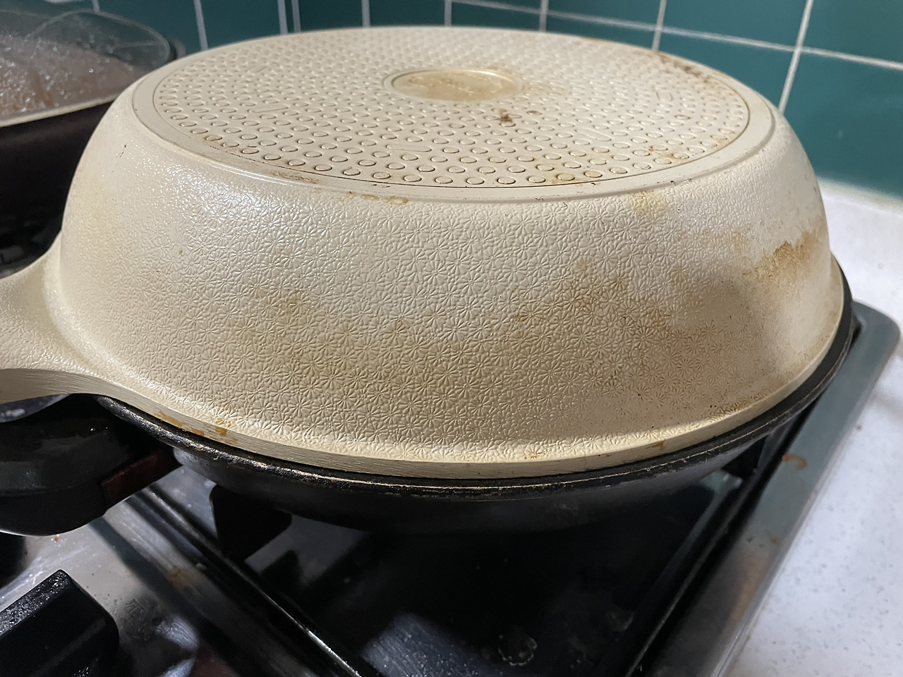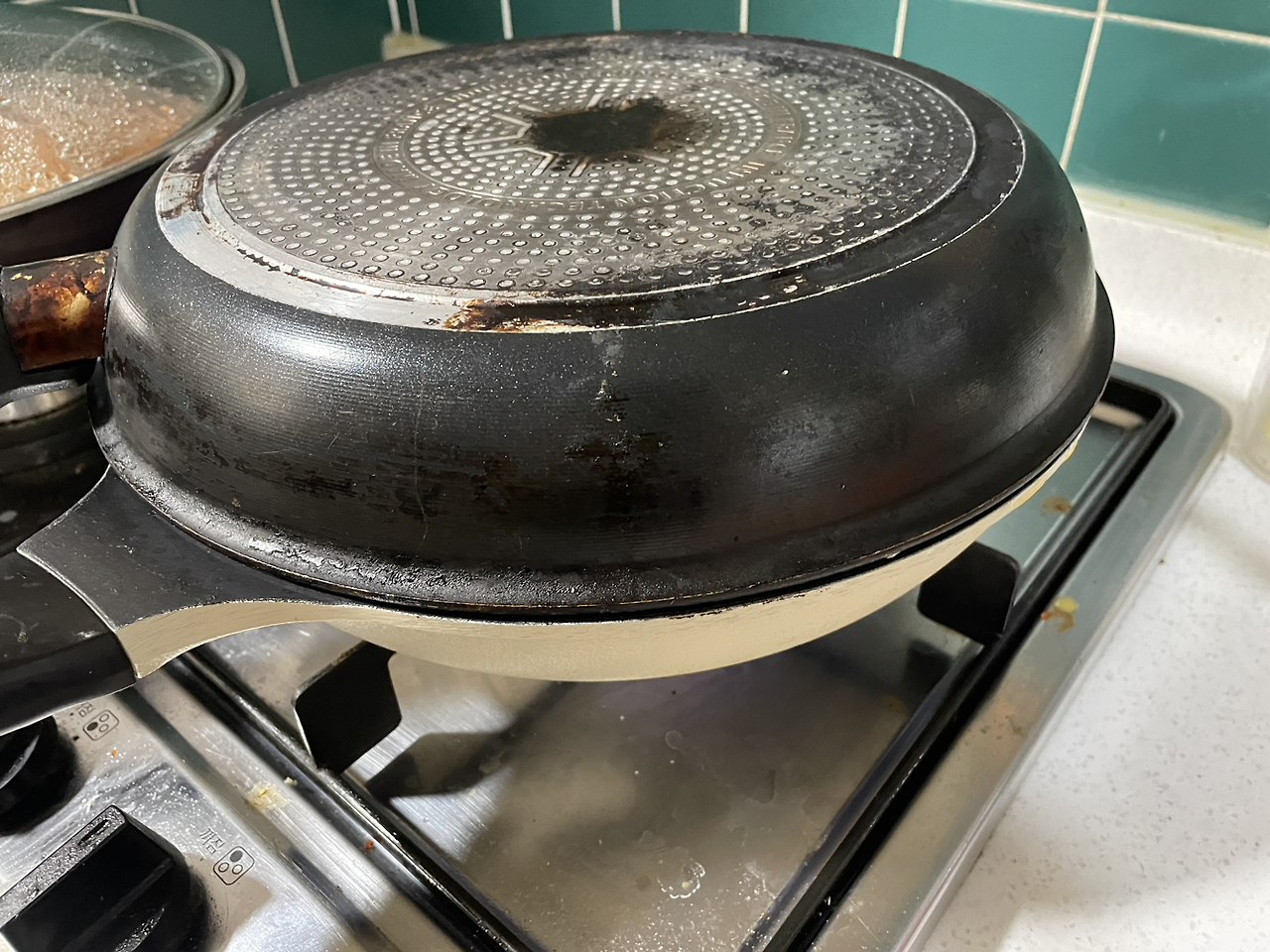약불에서 크기가 같은 팬으로 덮어 익히기