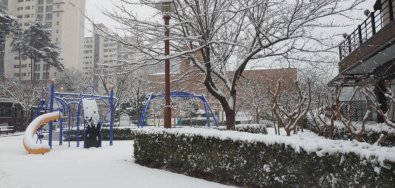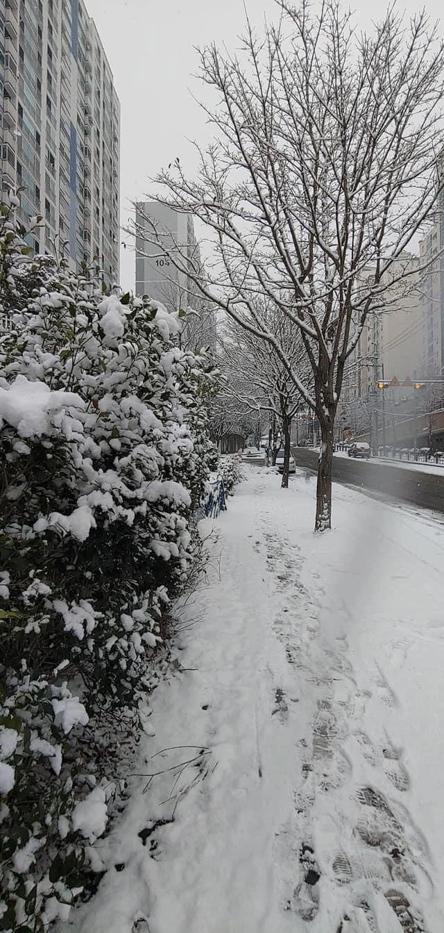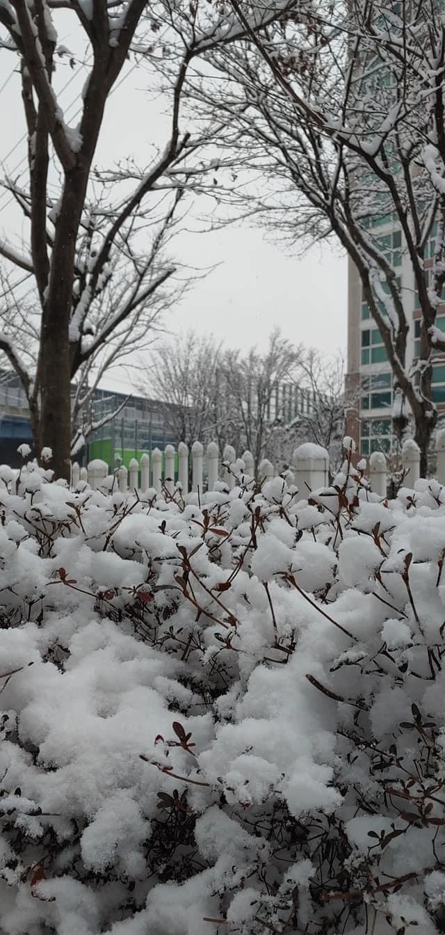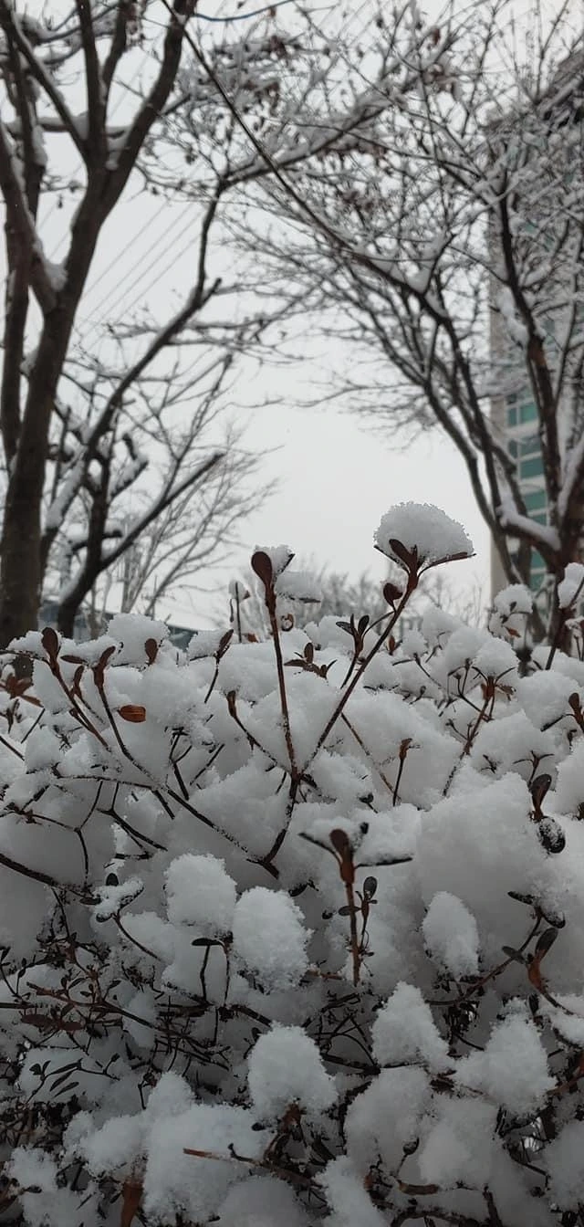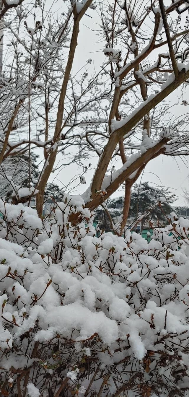 올 겨울 들어 처음 쌓인 눈,