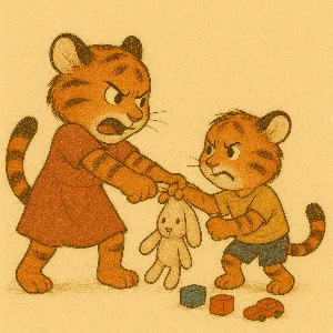 누나가 동생을 세게 밀었고