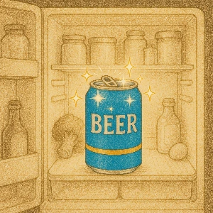 파란색 맥주 한 캔이 눈부시게 빛났다.