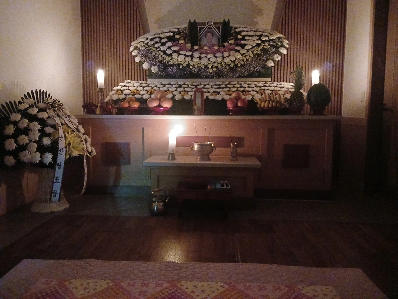 '웃으시는 영정사진 앞에서 멈추지 않는 눈물'