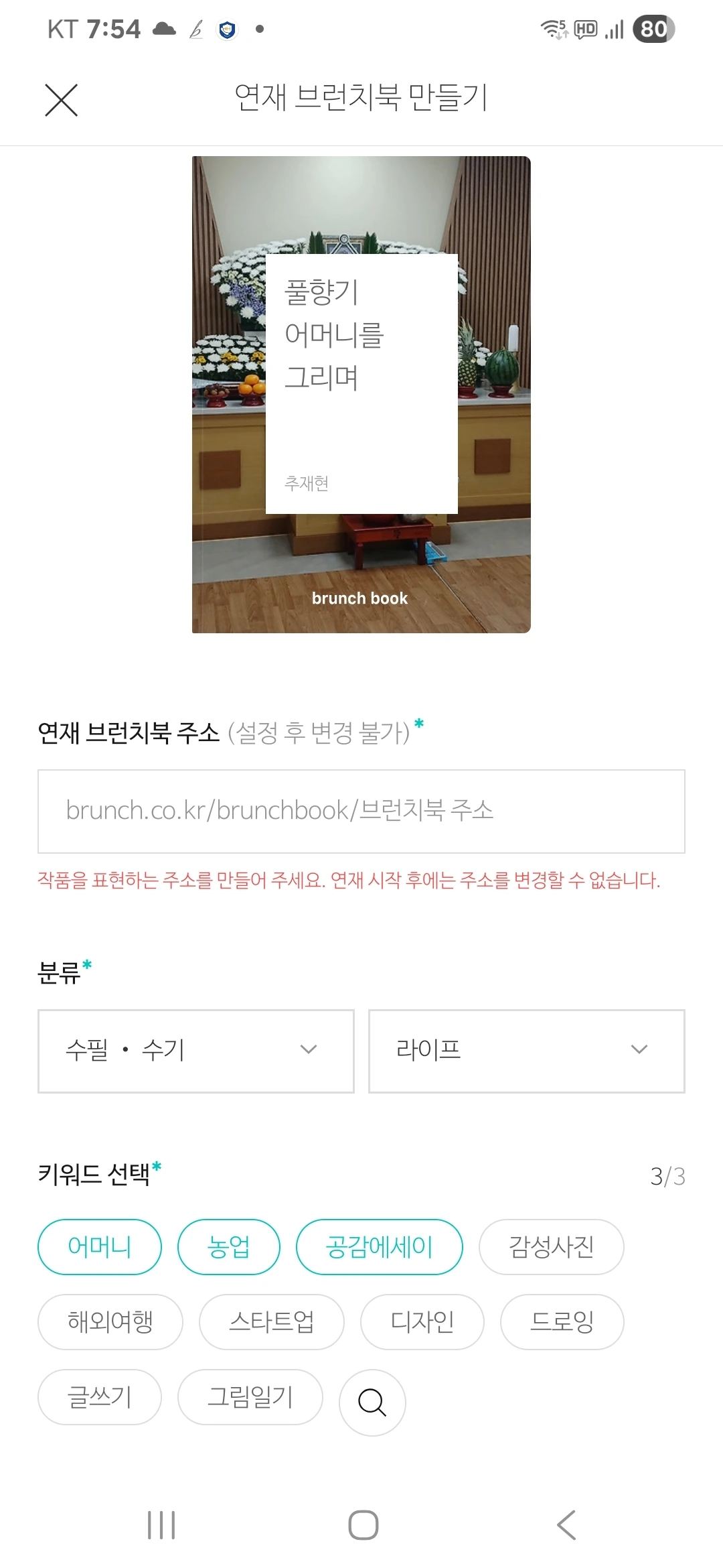 누르지 못하고 지금처럼 자유롭게 내가 쓰고 싶은 시간대에 쓰다가 글이 30개 정도 모이면 두 번째 북을