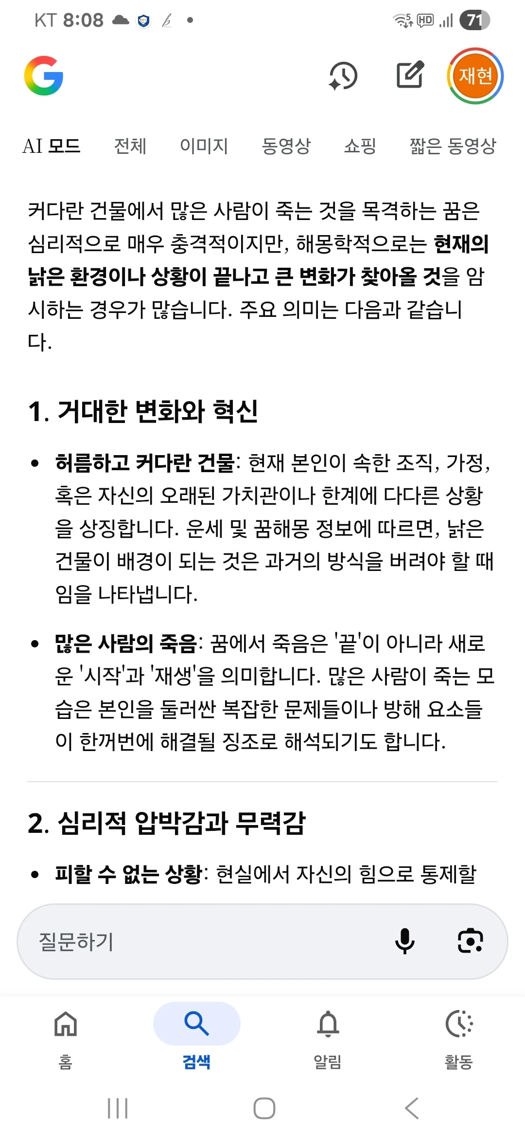 요즘 꿈을 꾸면 상당히 구체적으로 기억이나 찾아보게
