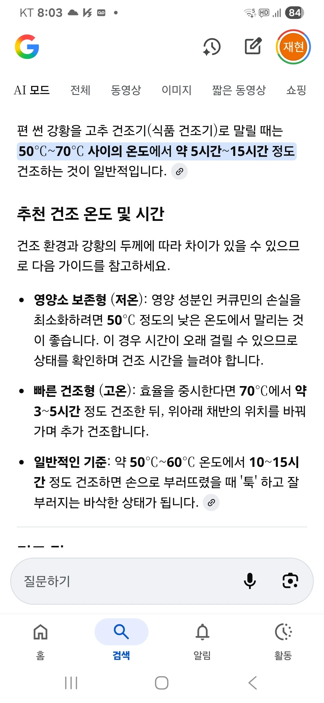 '강황ㆍ울금 '편 어느 정도 두께로 썰고 <건조기>몇 도