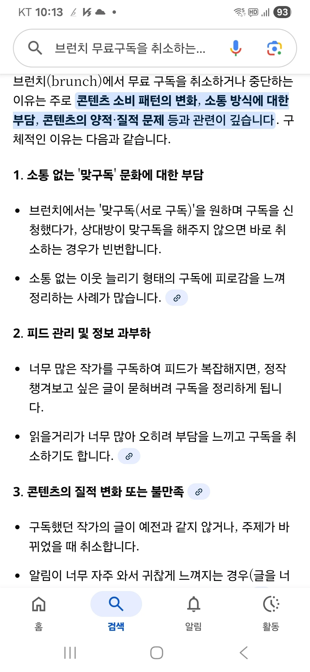 풀천지 일기가 떴는데 지금은 브런치 내 글만 보였다.