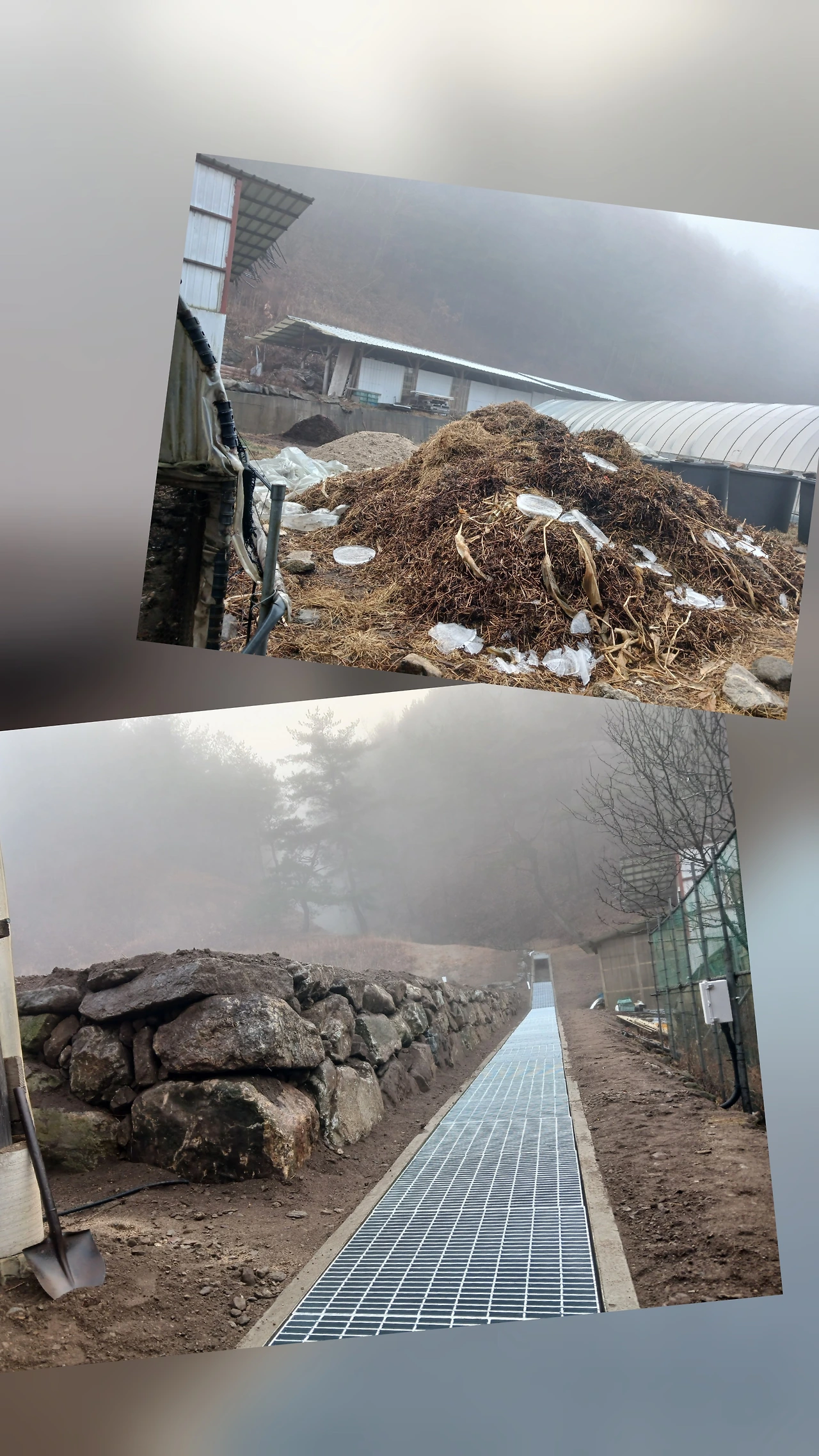다 완성된 거름더미 지난해 쓰고 조금 남은 게 비닐이 벗겨져 있다. 언제 덮어야 할 텐데 손을 못 대니 어제 내린 비를 또 맞히고 말았다.