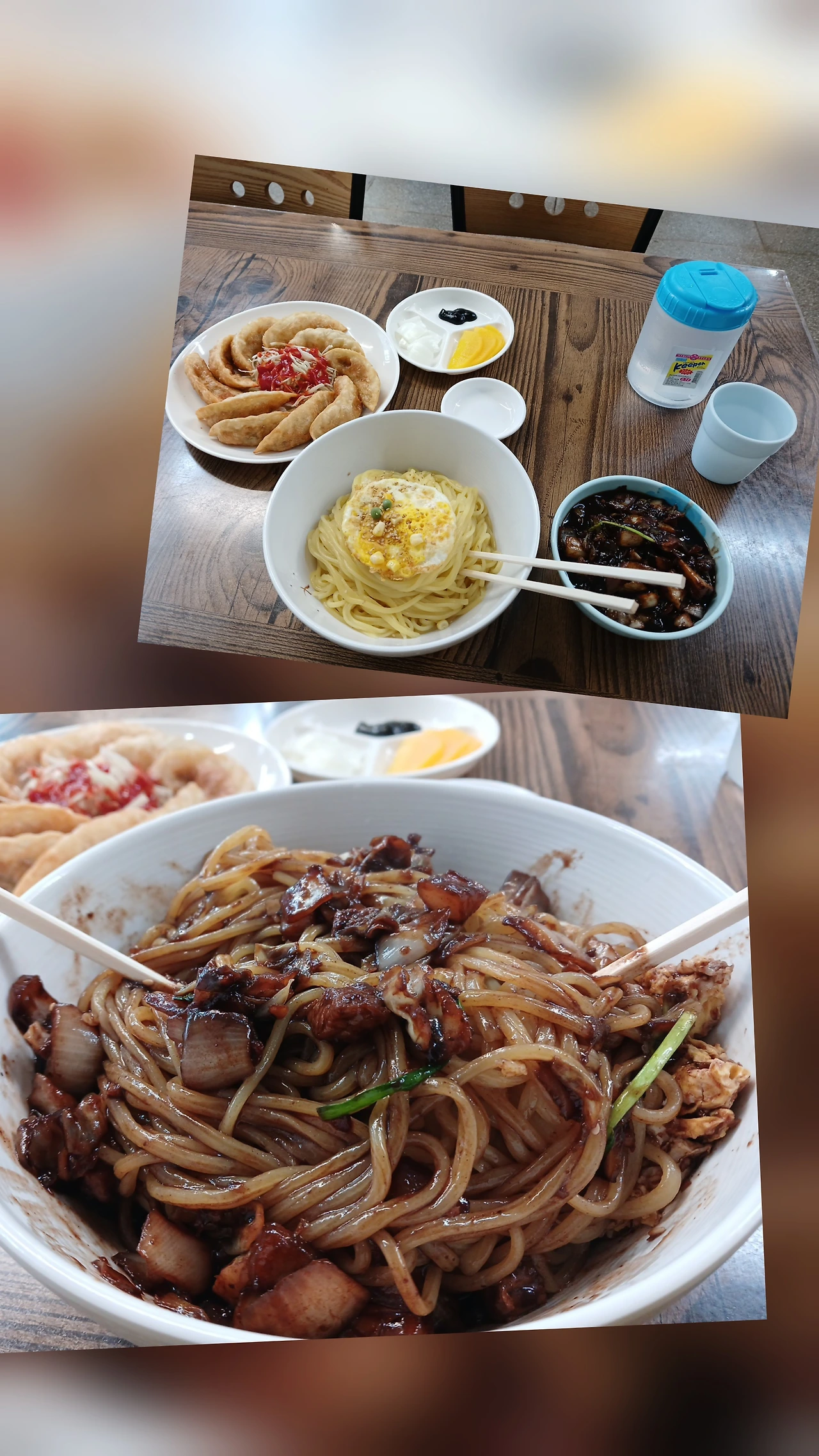 봉화죽향: 나 홀로 붐비는 점심시간 간짜장곱빼기와 군만두 시켜 먹음(아버지와 동생은 춘양 소머리국밥)