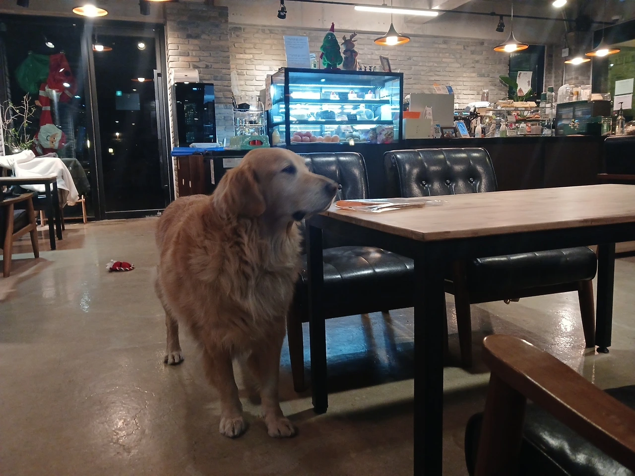 "괜찮다면 골든레트리버 쓰다듬어보고 사진도 찍고 싶은데 어떨까요?" "그러세요."