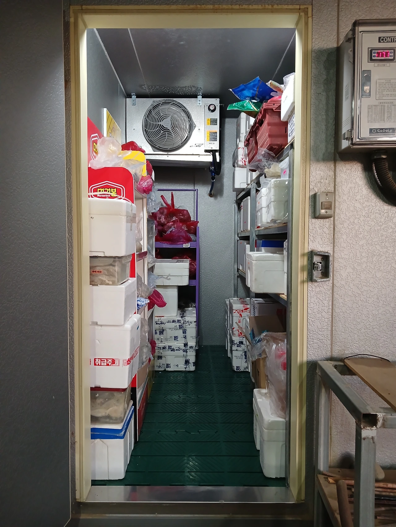 저온냉동고를 열 때마다 앞에 스티로폼 박스로 가득