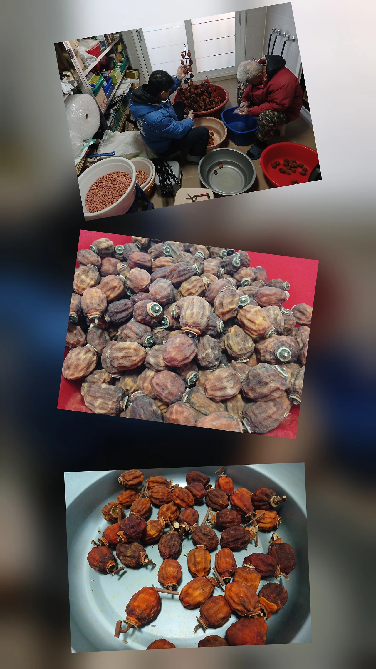 (저녁식사 후 2층 사랑방 옮겨 자정이 넘어서 까지 '곶감'포장하다 늦게 잠이든 동생)