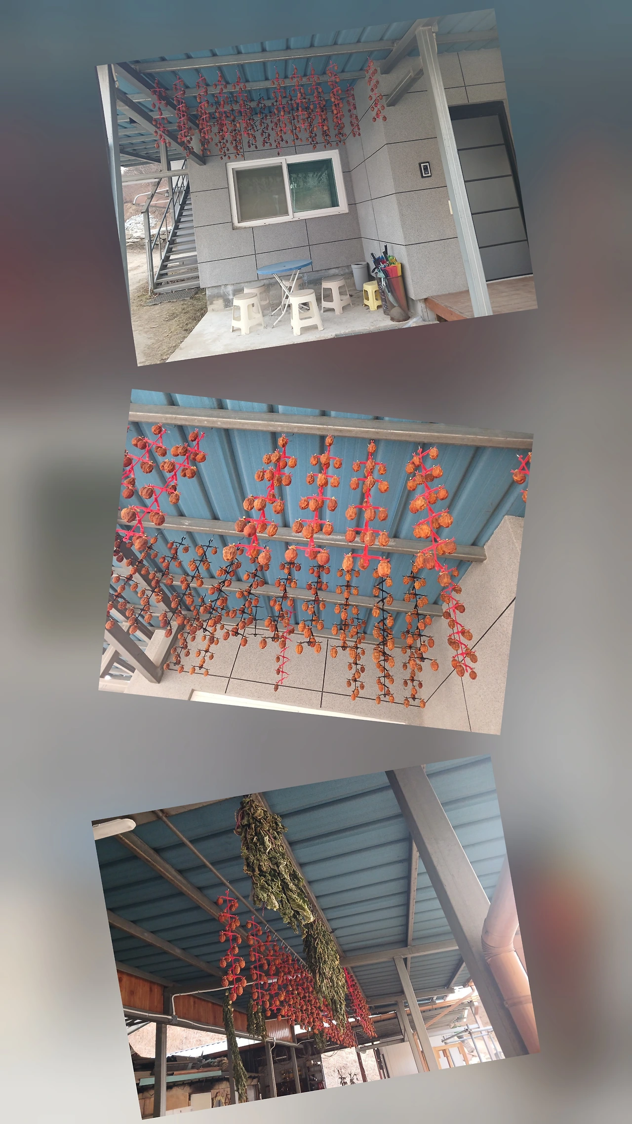 1) '곶감'과 도로 일일이 깎아 어느 정도 쌓이면 걸이대에 걸어 처마에 걸어주었다.