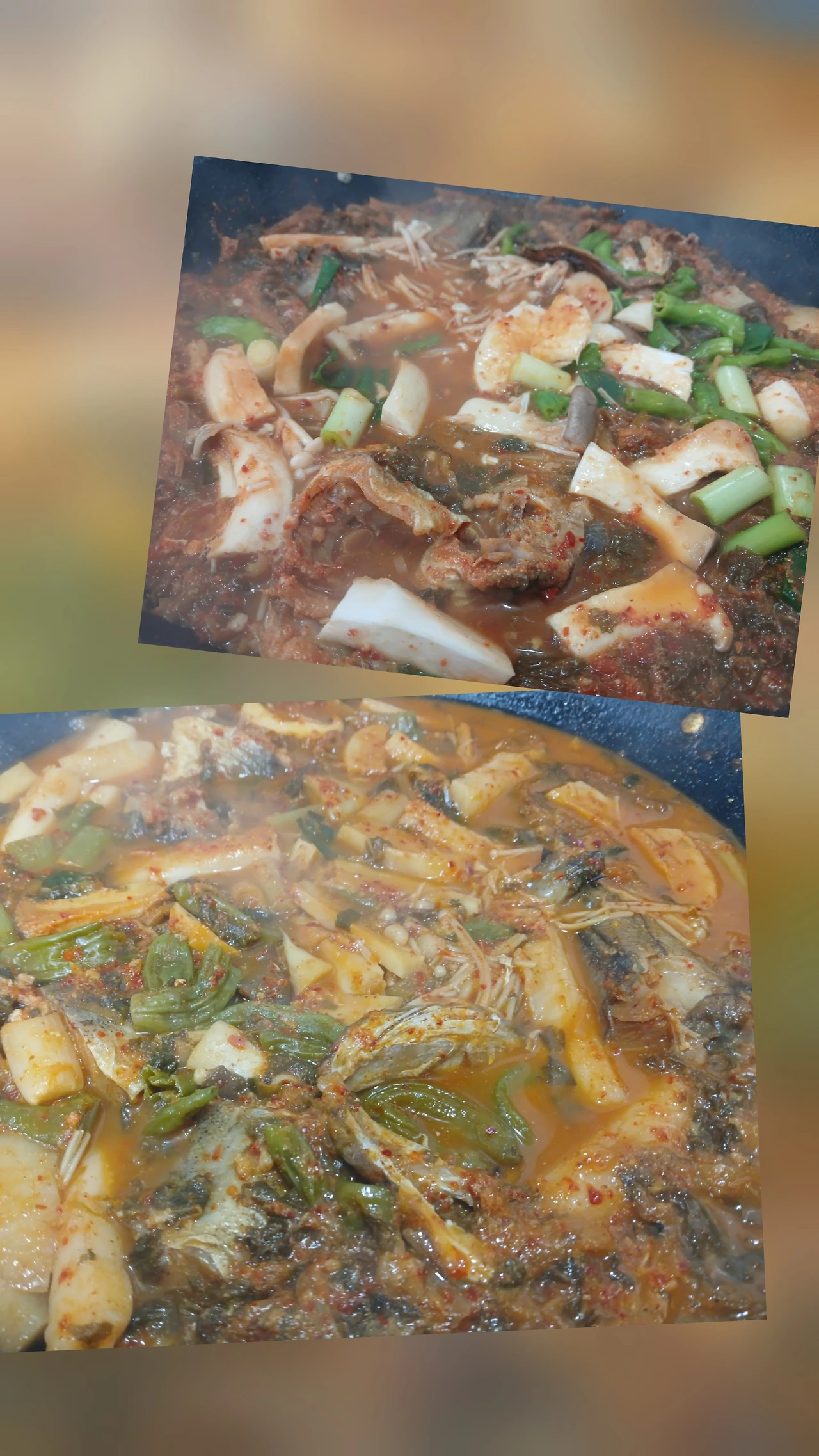빨리 익는 대파와 팽이버섯을 넣고 간을 참치액젓+새우젓국물로 삼삼하게 익히고 평소보다