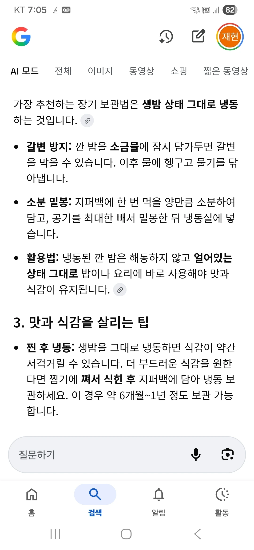 저온냉동고 가서 대하새우와 오징어 한 봉지 꺼내다가