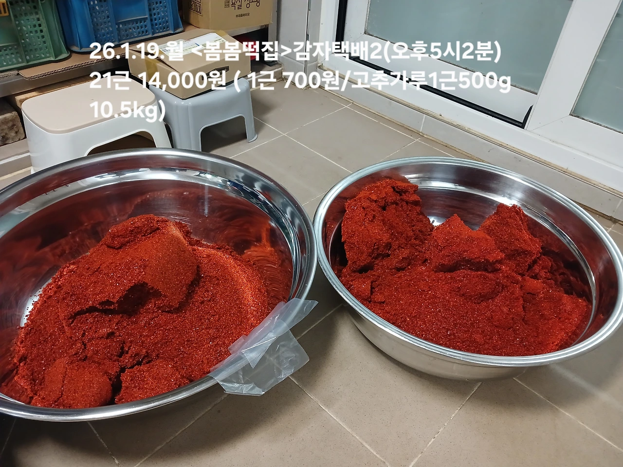 식구들이 소비할 태양초 맡기고 택배 부친 후