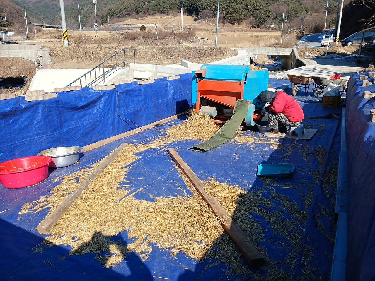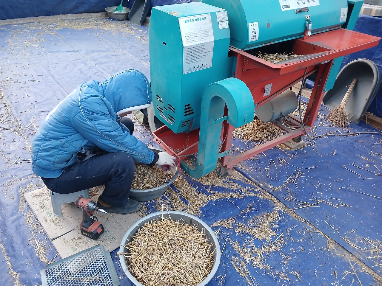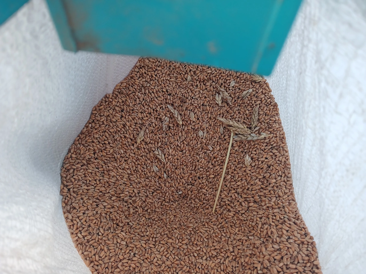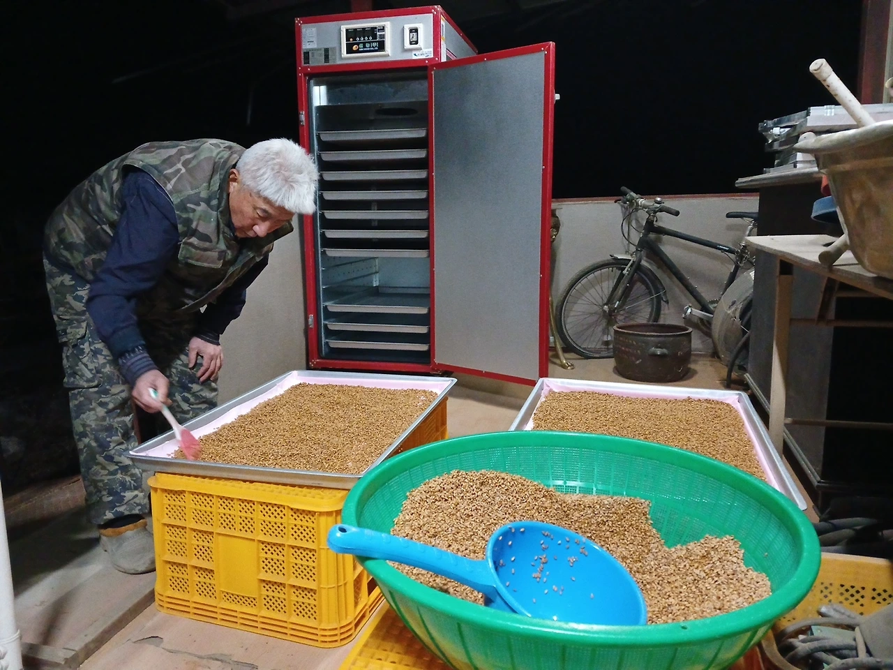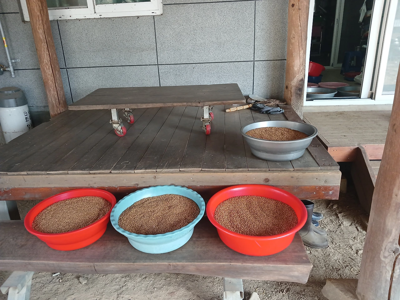 박달홍게 4kg와 밀 82kg 중 일부 세척 건조기로..