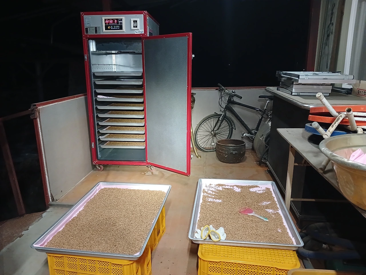 '고추건조기 12칸' 보자기 깔고 얇게 펴 널어