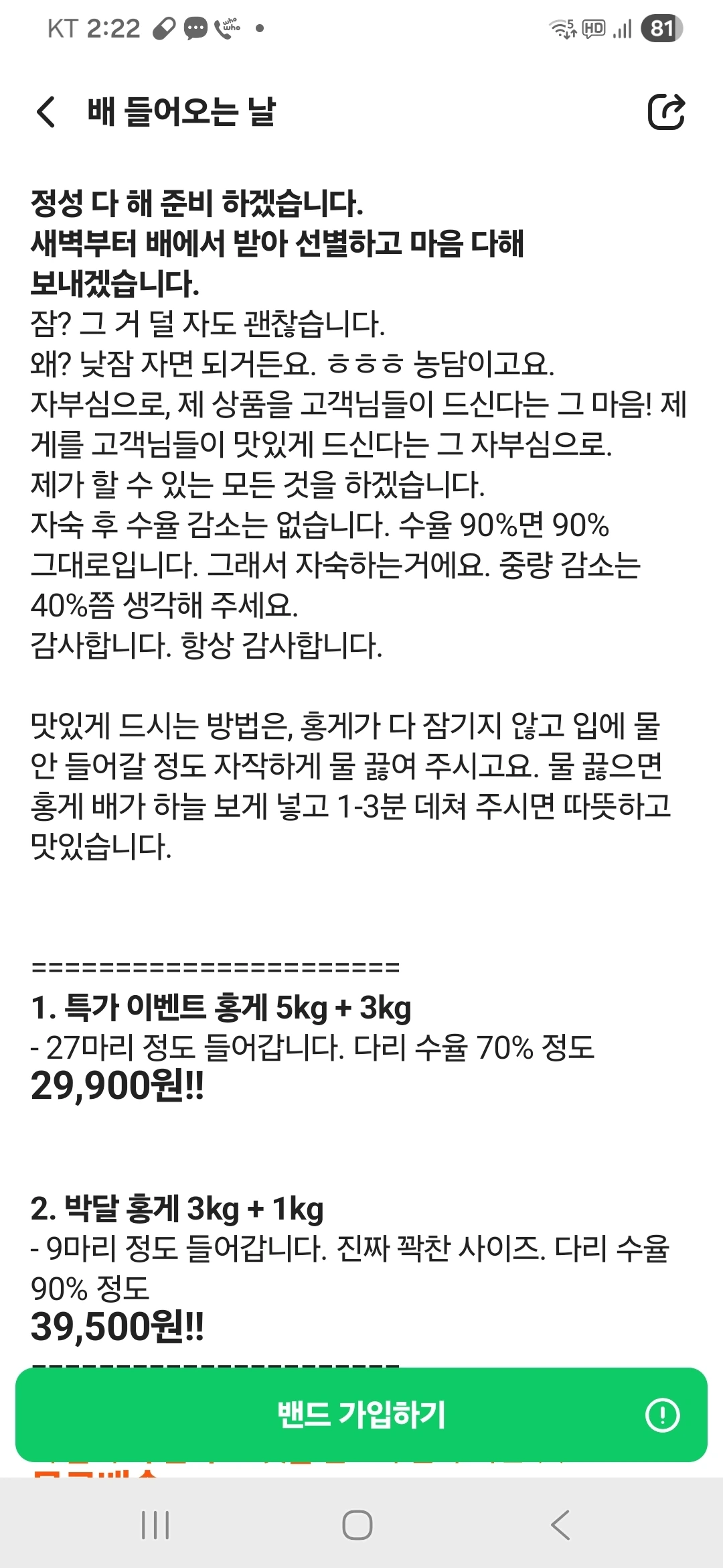 다 골른 것 세척하려 빼는데 어제 홍게 시킨 것
