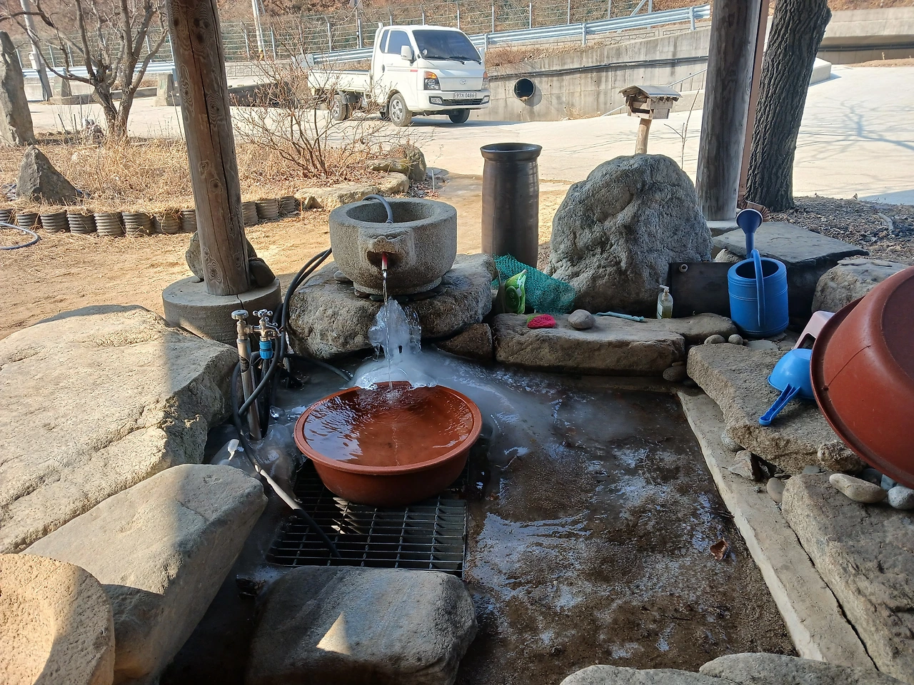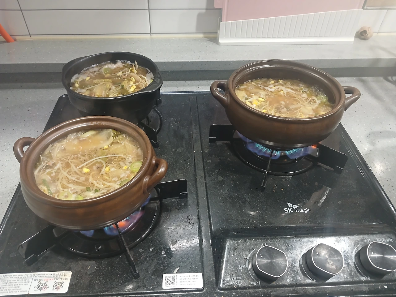 서비스소고기 받은 건 끓는 물에 조금 끓여 허래와 핏물 버리고 육수 맑은 국물에 넣어줌.