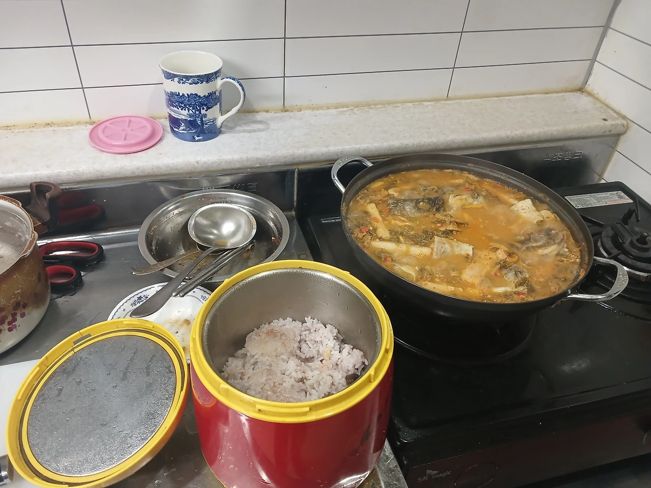 =국물과 건더기를 밥과 말아서 한 숟가락 드셔보신
