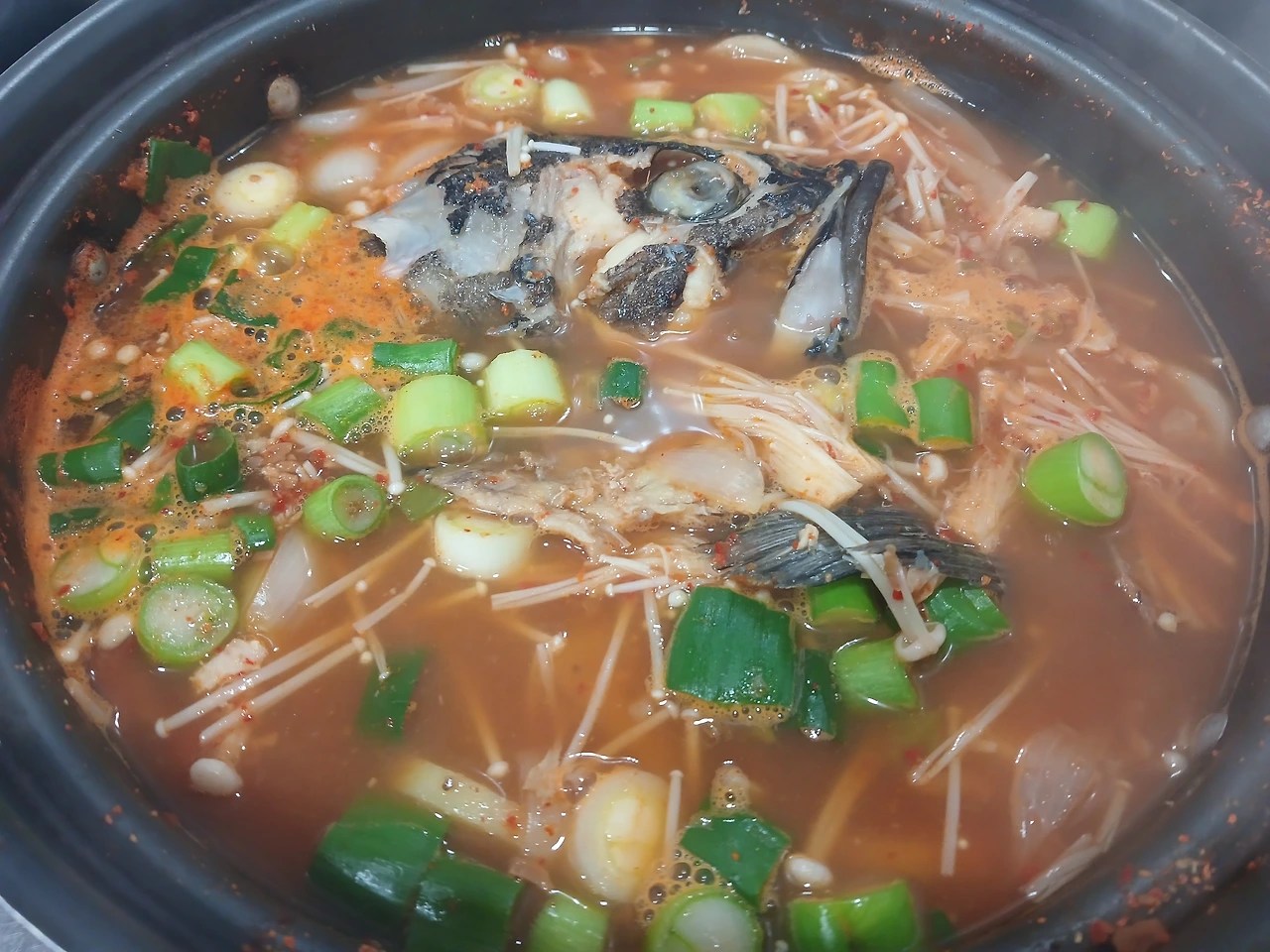 상차림은 오후 2시 넘음. 냉동떡 바로 넣고 살짝 덜 끓여내 떡이 날창거리지 않고 조금 설컹거림.