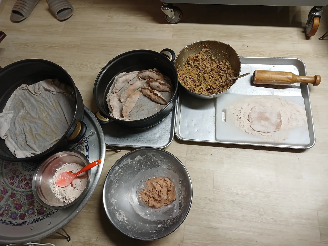 뜨거운 물에 오래 치대 소금 간 익반죽한 통밀 피는