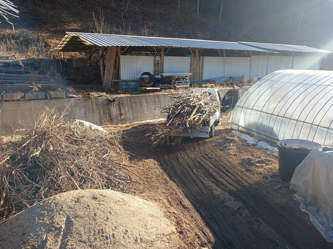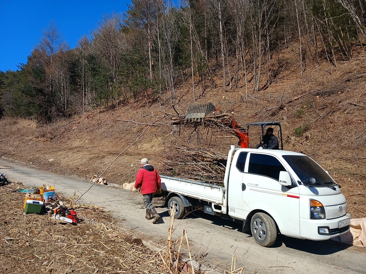 트럭에 2번 더 나무 실어 포클레인 내려와 내려주고
