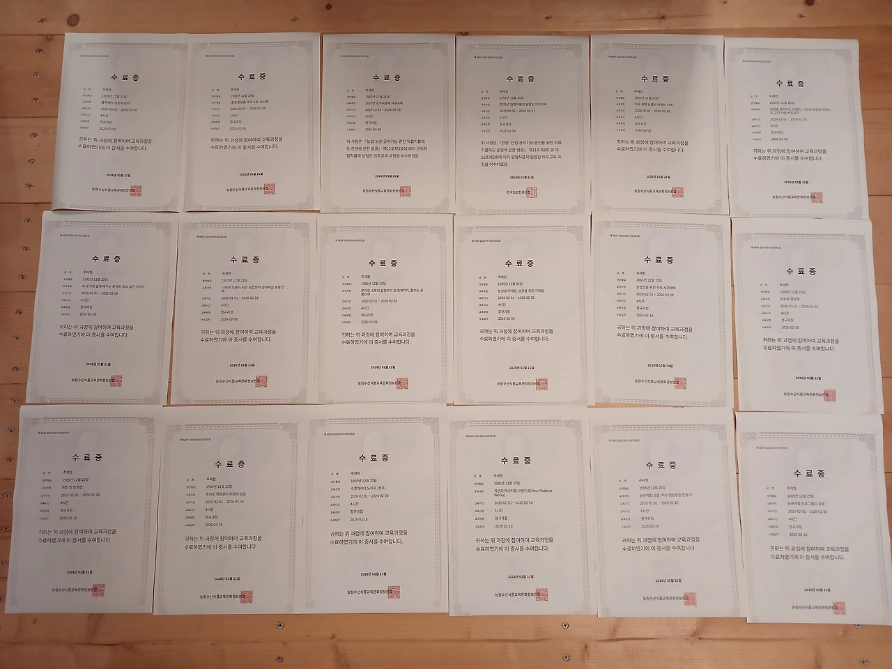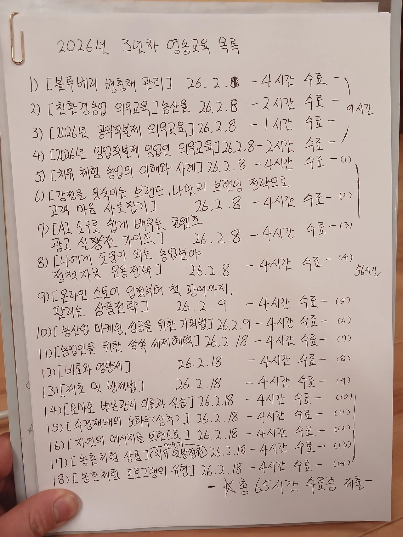 영농교육은 한해 20시간 온라인으로 하면 반만 인정되어 40시간을 받으면 되는데 난 65시간이나